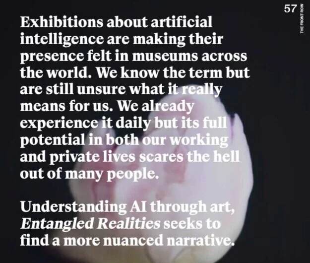 Entangled Realities, a group show currently on at HeK Basel, looks at the impact of artificial intelligence (AI). Increasingly our world is being created by software we hardly understand – financial markets where bots endlessly trade with other bots, social media algorithms that control what narrative we see, even AI fakes that make us doubt our own ears and eyes – so that it becomes harder and harder to sort out where the human influence is. Works in the show question this entanglement, and by exploring it seek to disentangle notions around what it might be to be both machine and human.