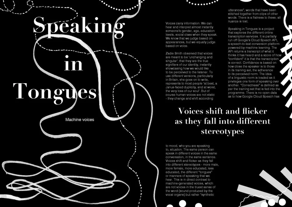 Voices carry information. We can hear and interpret almost instantly someone's gender, age, education levels, social class when they speak. We know that we judge based on appearances, but we equally judge based on voice. Zadie Smith has observed that voices are meant to be 'unchanging and singular'; that they are the true signifiers of our identity, instantly showcasing how we would like to be perceived to the listener. To use different versions, particularly in Britain, she goes on to write, represents to most people 'at best, a Janus-faced duplicity, and at worst, the very loss of our soul'. But of course human voices are not static - they change and shift according to mood, who you are speaking to, situation. The same person can speak in different voices in the same conversation, in the same sentence.